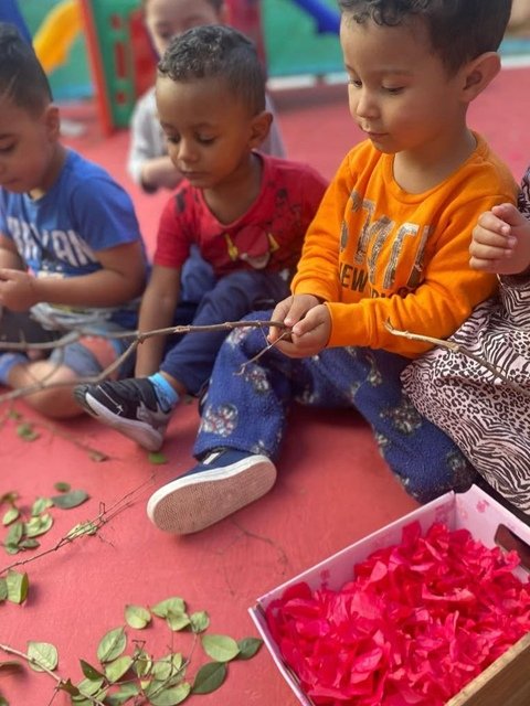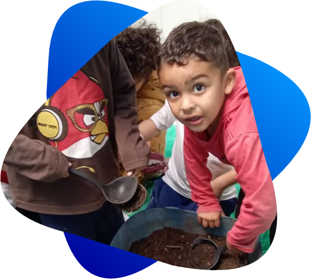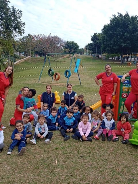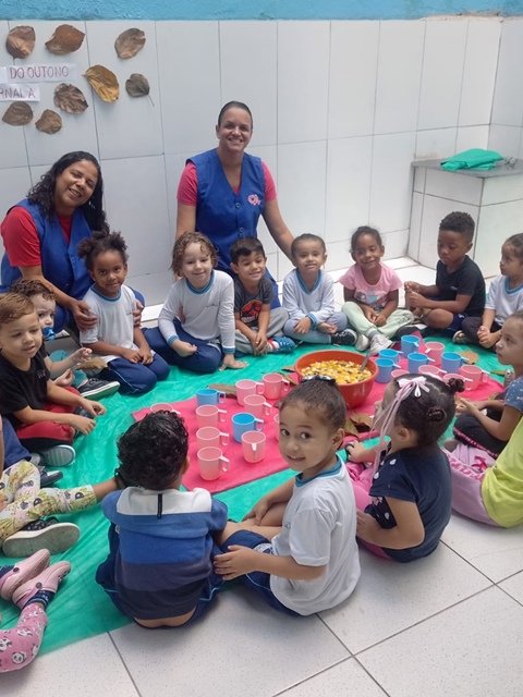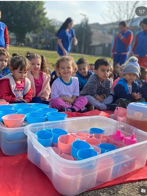 Atendemos 145 alunos, distribuídos em uma turma multisseriada, três turmas de Berçário II e uma turma de Maternal.
